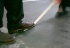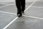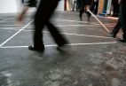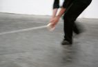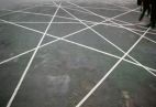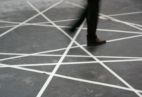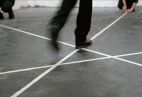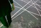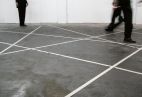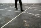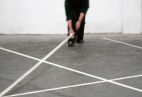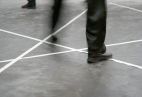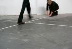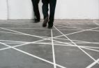 In vier verschiedenen aufeinander folgenden Abschnitten werden Kleberollen und PVC Rollen durch den Raum gespannt und abgelegt. Die entstandenen Linien werden jeweils von einer Person abgeschritten. Am Ende eines jeden Abschnittes wird das entstandene Liniennetz unter Mithilfe des Publikums wieder aufgelöst.